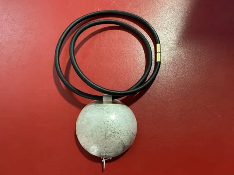 Ein einzigartiges Designstück für Schmuckliebhaber: Dieses Collier aus massivem Silber trägt die Signatur „SURYA YVES“ und kombiniert eine kunstvolle, organisch geformte Anhängerstruktur mit einem eleganten Kautschukband.