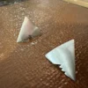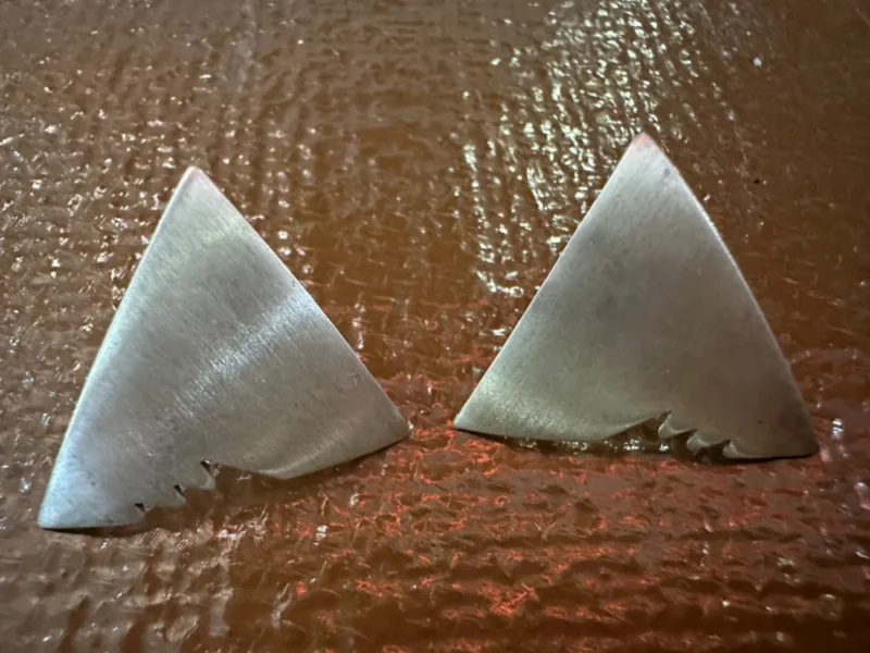 Diese aussergewöhnlichen, handgefertigten Ohrringe vereinen modernes Design mit minimalistischem Stil. Die dreieckige Form und die gezackten Details am Rand verleihen ihnen einen markanten, individuellen Charakter.