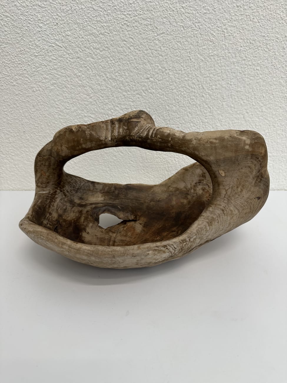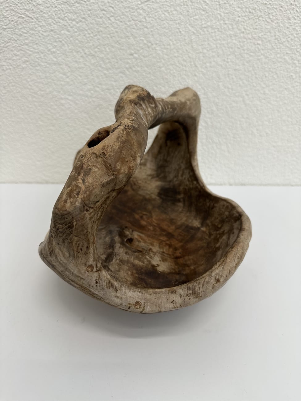Skulpturale Holzschale aus massivem Wurzelholz mit Griff