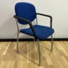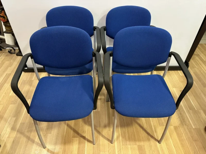 Stapelstuhl/ Armlehnen Stuhl / Wohnzimmerstühle mit Polster befinden sich in einem Optimalen Zustand. Diese Stühle sind in einem passenden 4er oder auch 6er Set erhältlich. Sie weisen praktisch keine Gebrauchspuren auf, ausser bei einem Stuhl finden man einen kleinen Fleck. Die Stühle geben viel Komfort her, zum einen mit der Rückenlehne wie auch der Armlehnen. Das Polster der Stühle macht es ebenfalls gemütlich. Die Stühle sind in einem neutralen, blau gehalten und können demensprechend überall eingesetzt werden.