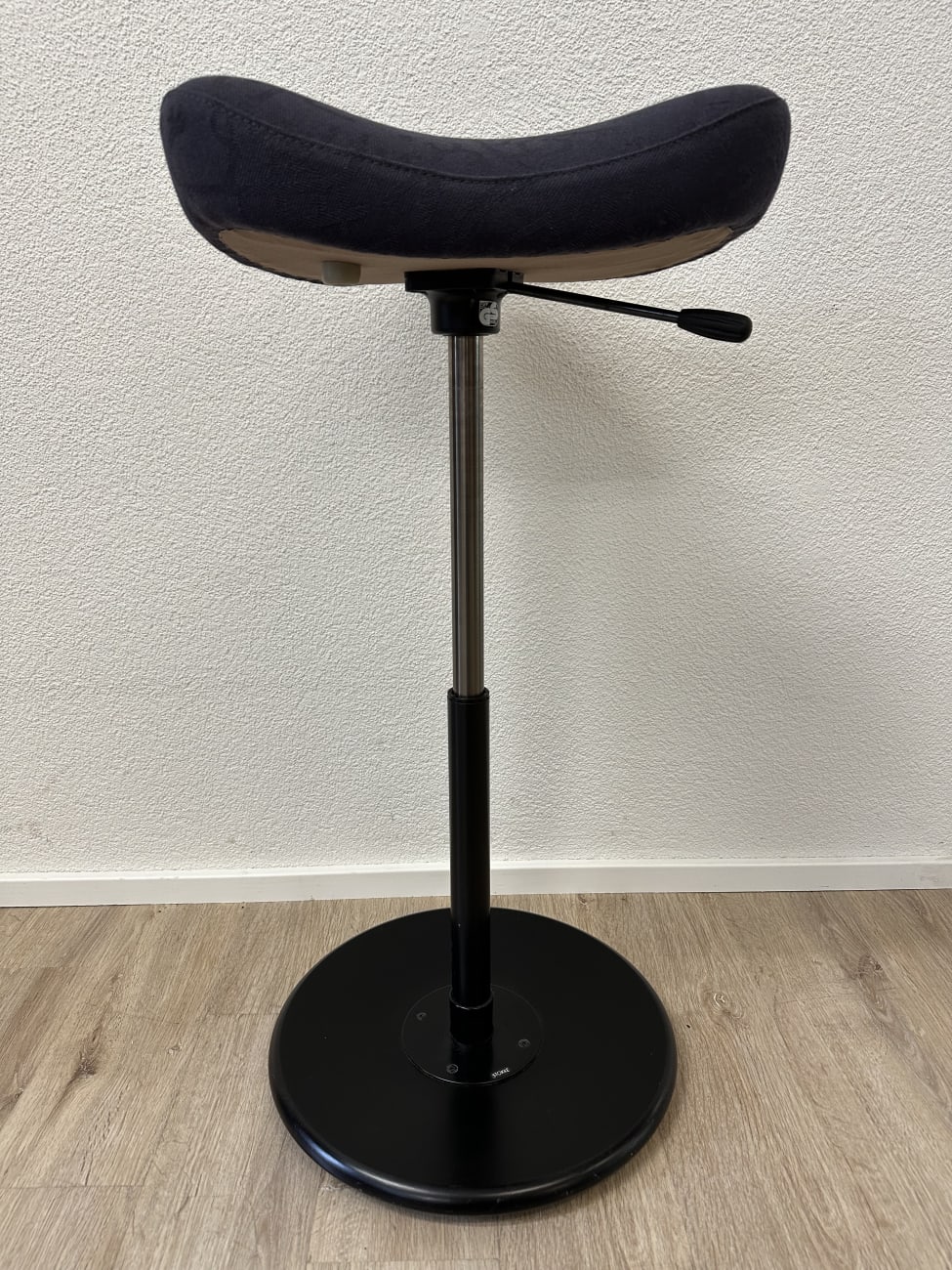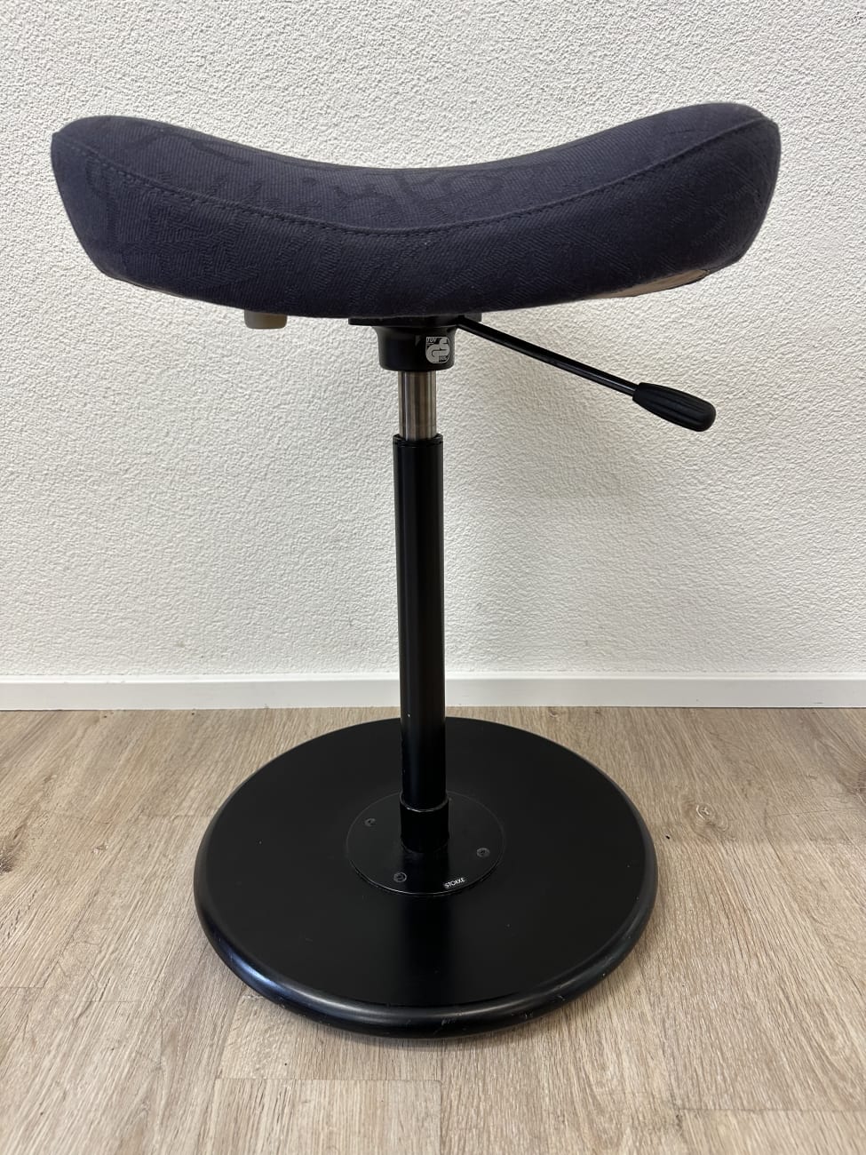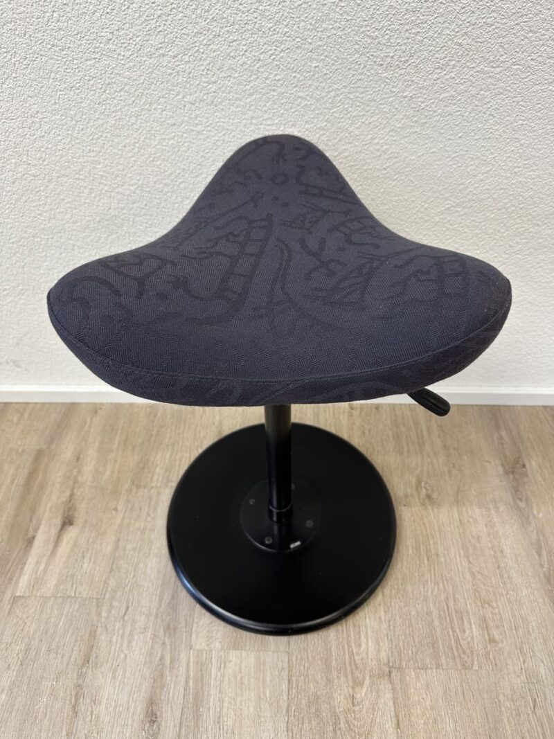Der Hocker reagiert auf jede Gewichtsverlagerung und kippt leicht mit. Das entlastet Rücken und fördert die Haltung im Alltag. Die Höhe lässt sich schnell anpassen, ideal für Arbeiten am Tisch oder Stehpult. Das dezente dunkle Muster wirkt ruhiger als die rote Variante und passt gut in moderne Arbeitsbereiche.