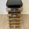 Ein passender Schlüssel ist vorhanden, einzelne Schubladen lassen sich abschliessen. Die Kommode eignet sich sowohl als Stauraummöbel wie auch als eigenständiges Designobjekt.