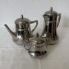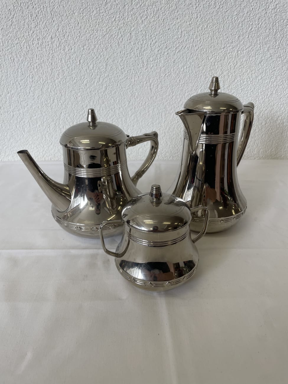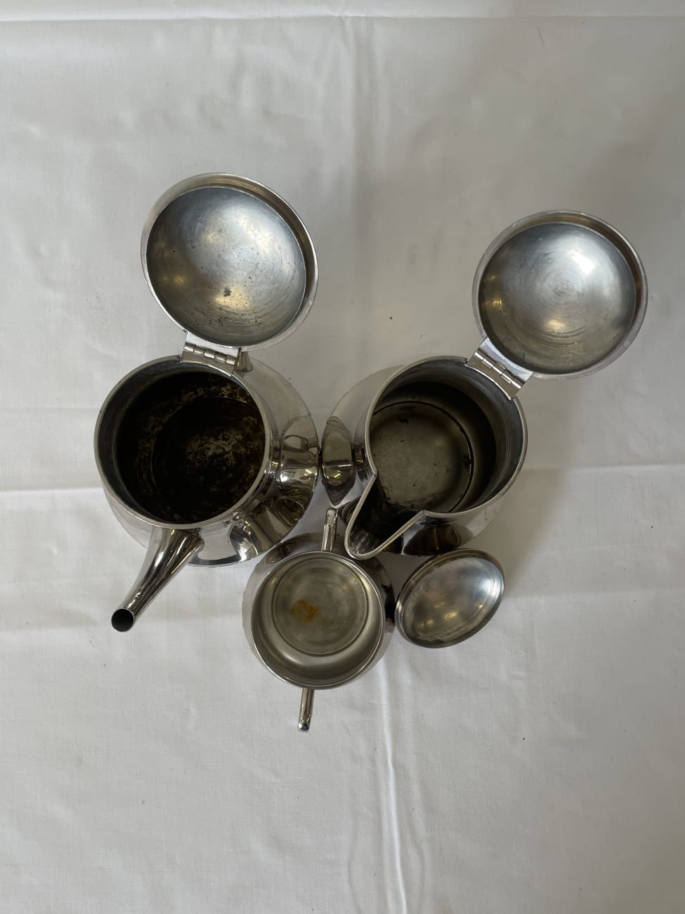 Teeservice aus Edelstahl mit Teekanne, Kaffeekanne und Zuckergefäss