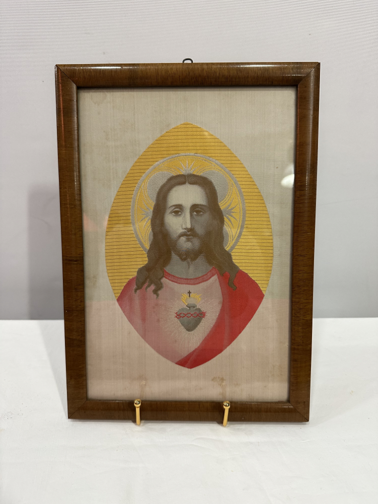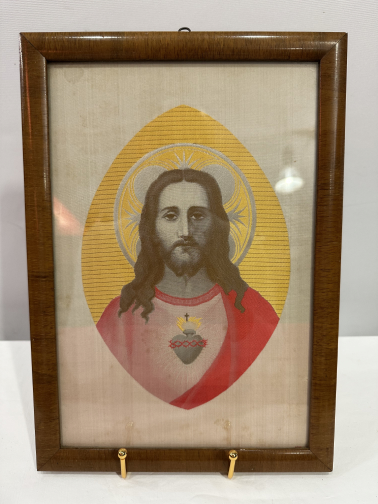 Textilbild «Herz Jesu» auf Seide frühes 20. Jahrhundert