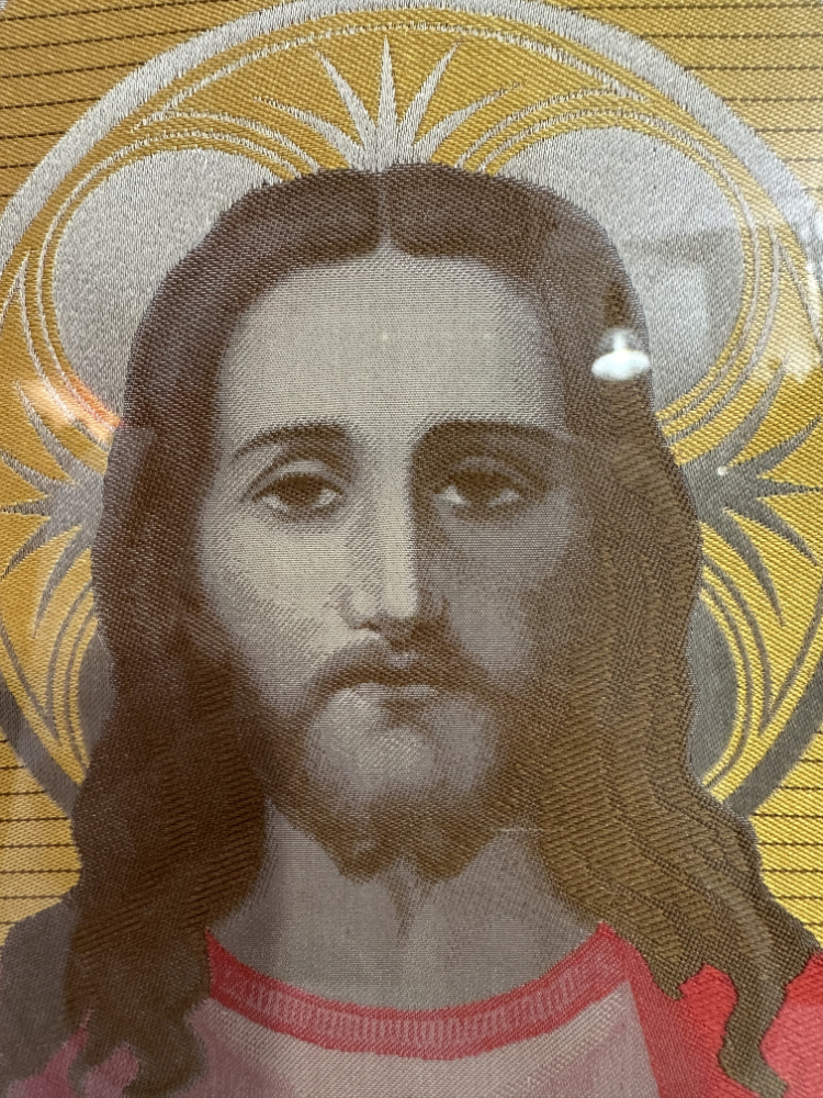 ✅ Textilbild «Herz Jesu» auf echter Seide