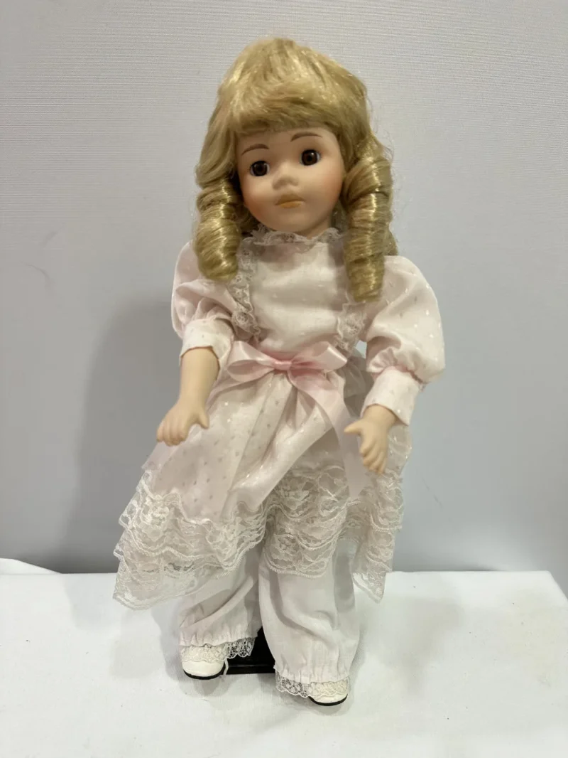 Die «Classique Collection»-Porzellanpuppe «Jessica» befindet sich in einem guten bis sehr guten Zustand. Diese Puppe ist noch in ihrer vollen Pracht und originalverpackt. Zudem kommt sie mit einer Halterung, mit der man sie praktisch aufstellen kann. Sie eignet sich besonders für Kinder ab 14 Jahren oder für Erwachsene als Sammlerstück sowie als hübsche Dekoration.