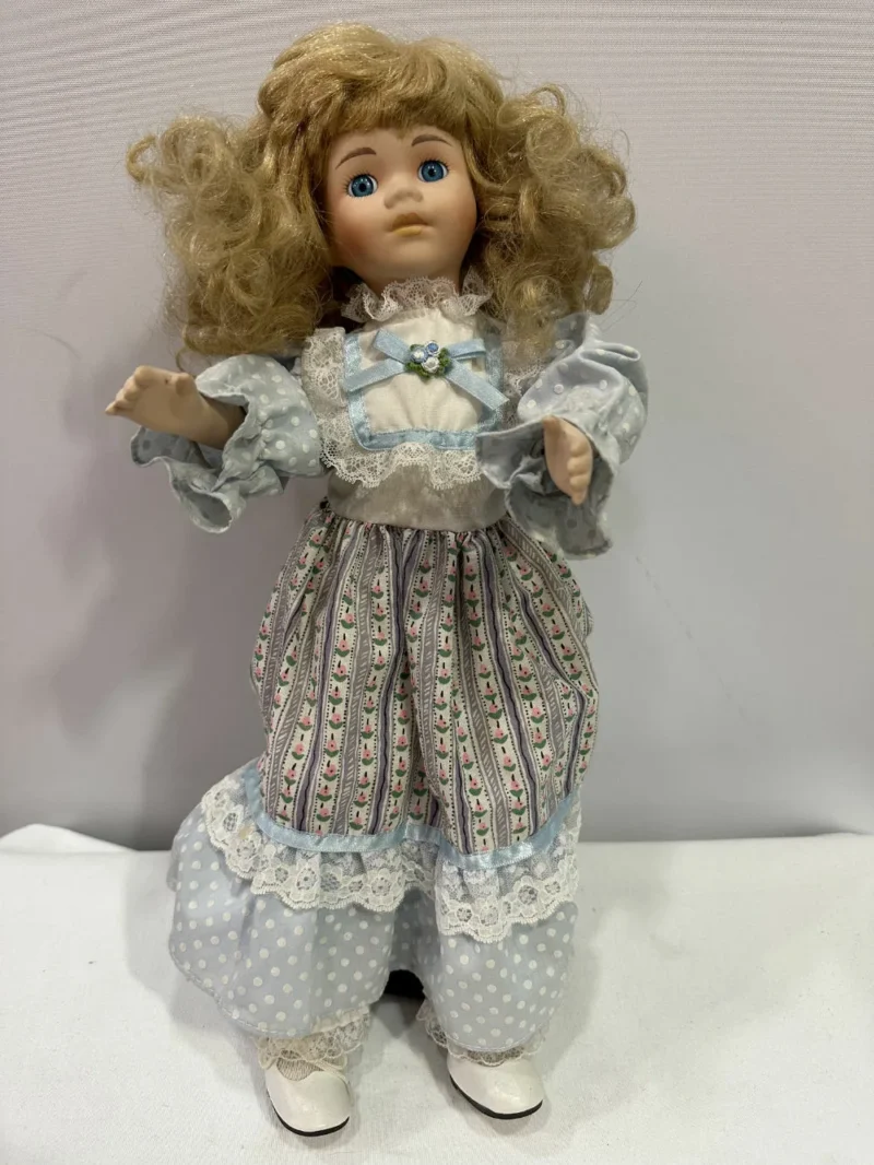 The Classique Collection Porzellan Puppe Rachel befindet sich in einem guten bis sehr guten Zustand. Diese Puppe ist noch in ihrer vollen Pracht und originalverpackt. Zudem kommt sie mit einer Halterung daher, mit der man sie praktisch aufstellen kann. Sie eignet sich besonders für Kinder ab 14 Jahren oder für Erwachsene als Sammlerstück sowie als hübsche Dekoration.