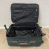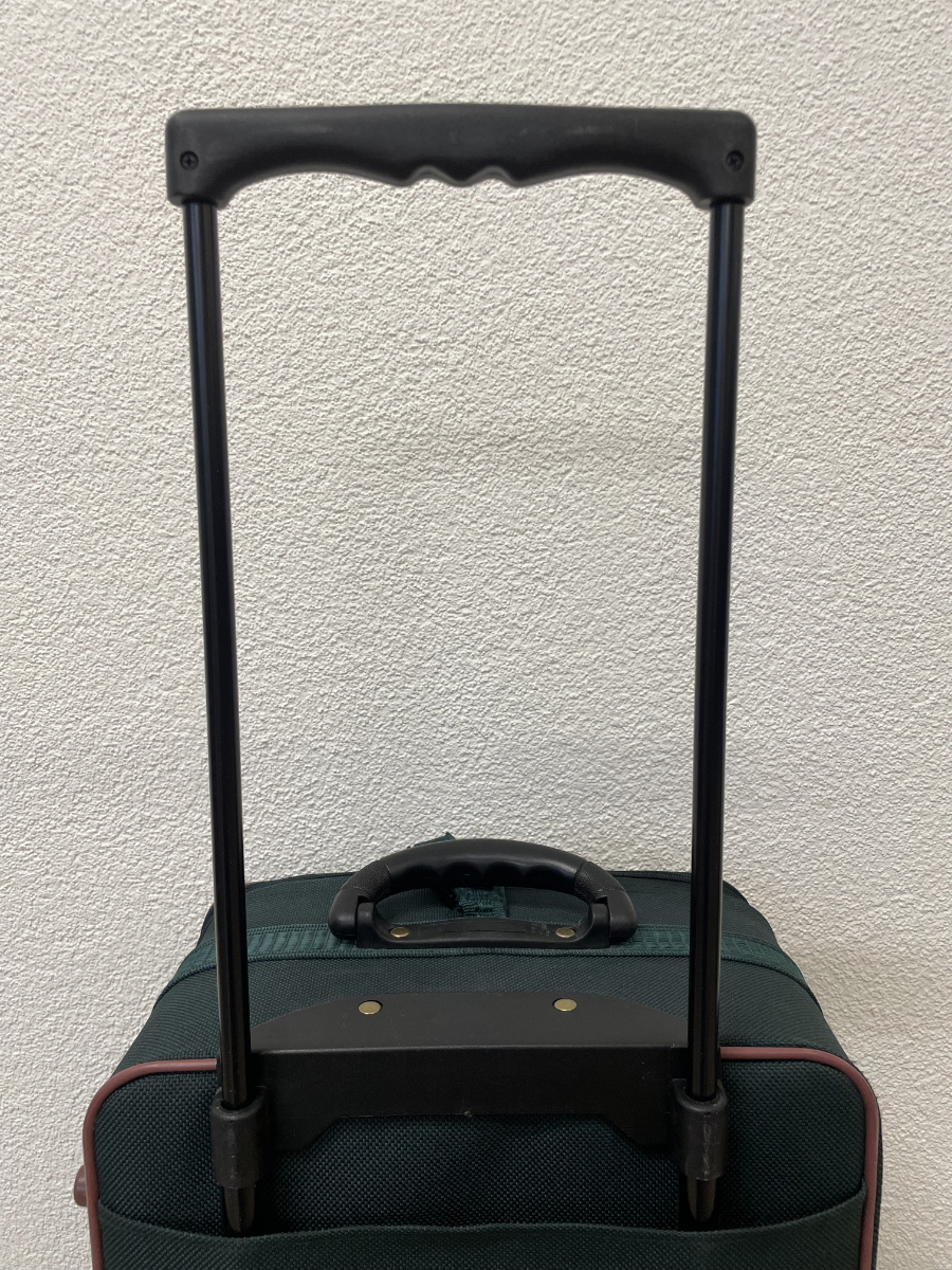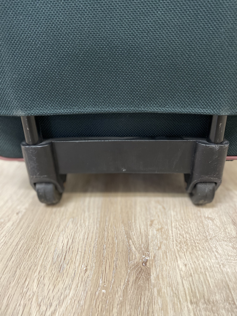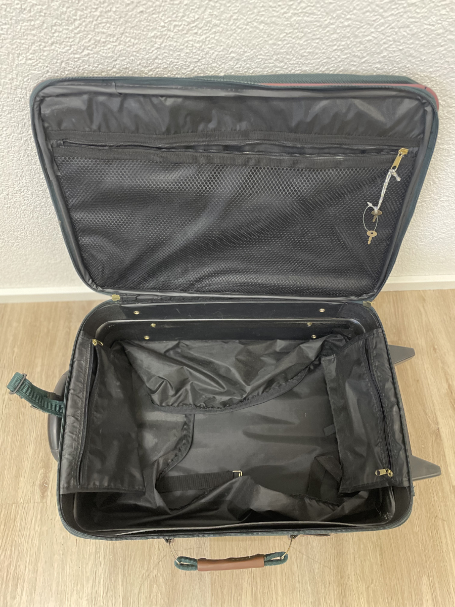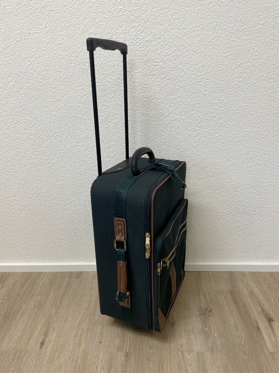 Dunkelgrünes Textilgewebe, braune Kunstleder-Details und eine funktionale Innenaufteilung prägen diesen kompakten Trolley-Koffer. Das Hauptfach lässt sich weit öffnen und bietet übersichtlichen Stauraum. Im Deckel befindet sich ein Reissverschlussfach aus Netzmaterial. Der Koffer ist abschliessbar, passende Schlüssel sind vorhanden. Mehrere Aussenfächer ermöglichen schnellen Zugriff auf Dokumente oder Zubehör. Kunststoffrollen und stabiler Griff sorgen für angenehmes Handling.
