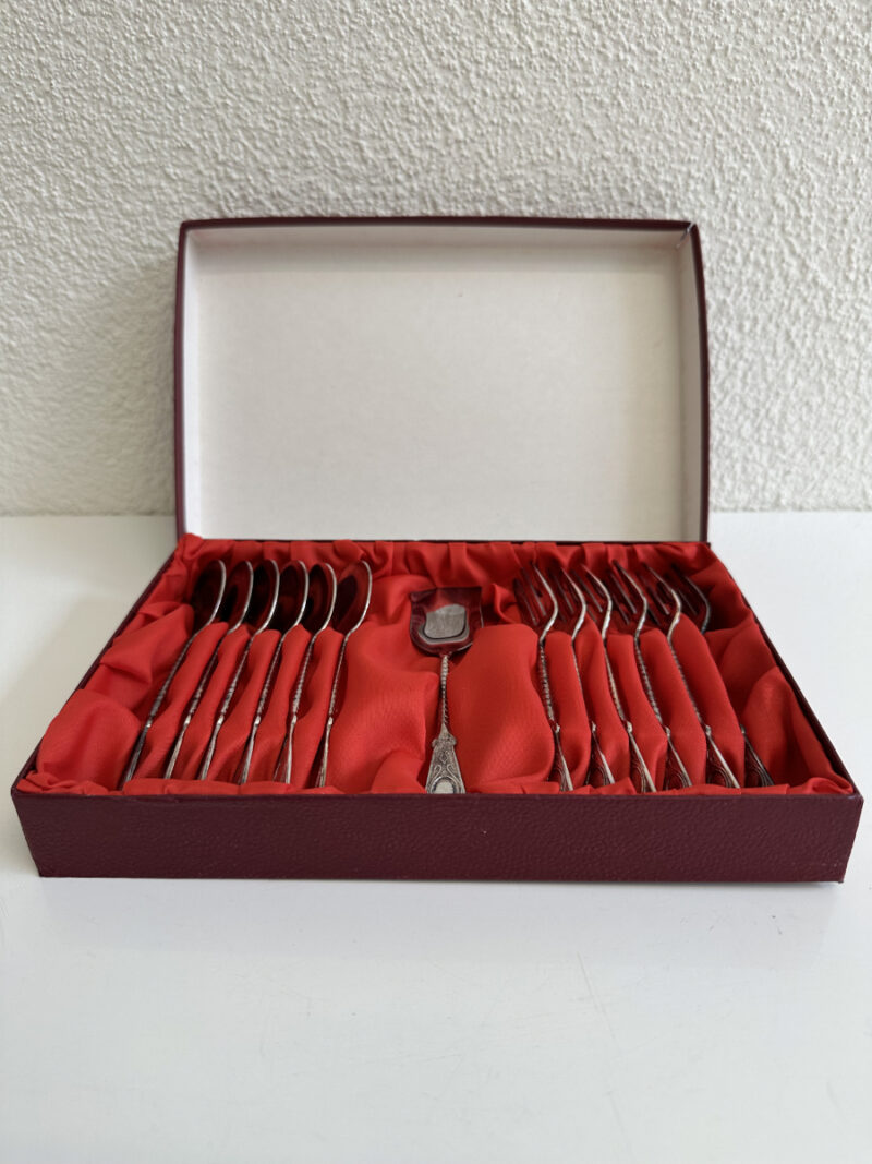 Versilbertes Metall Besteckset mit Box, 13-teilig