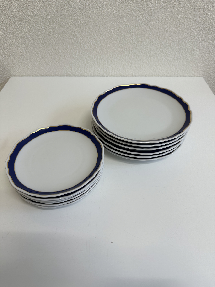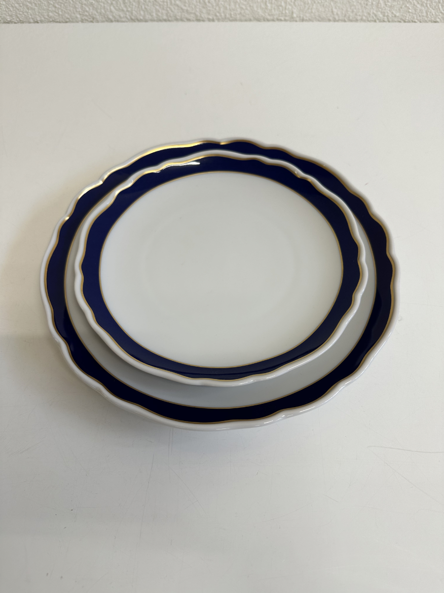 Vintage 12-teiliges Hutschenreuther Maria Theresia Kobalt Blau Gold Saphir Teller-Set