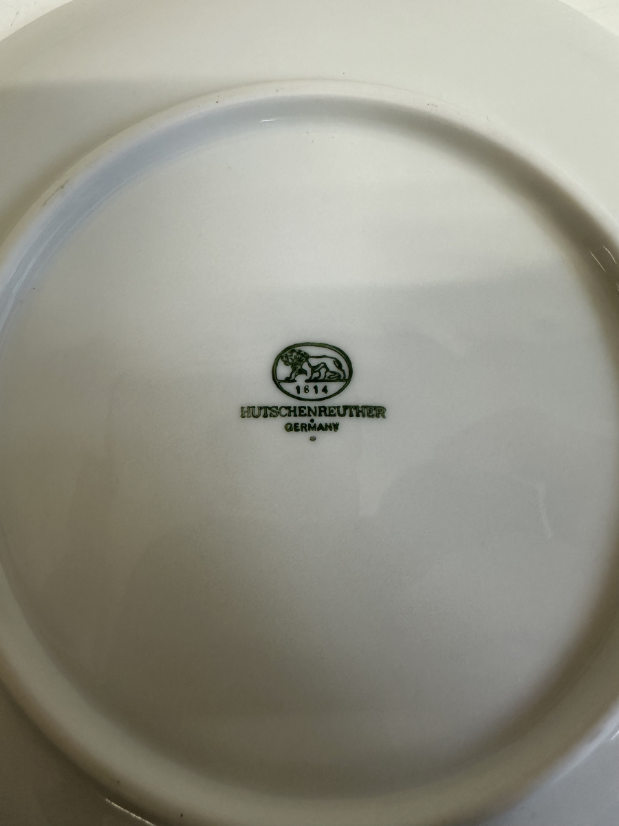 Kobaltblauer Rand in Saphir-Optik, feine Goldlinien und der leicht gewellte Maria Theresia Rand: dieses Hutschenreuther Set wirkt am Tisch sofort edel, ohne laut zu sein. Die Kombination aus weissem Porzellan und dem tiefen Blau passt zu festlichen Anlässen genauso wie zu einem schönen Alltagsgedeck. Auf der Unterseite ist die Hutschenreuther Germany Marke zu sehen.