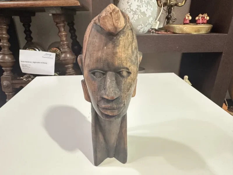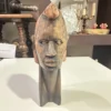 Vintage Afrikanische Holzfigur/ Handschnitzerei aus massivem Teakholz befindet sich in einem guten bis sehr guten Zustand. Sie ist besonders gegenzeichnet durch ihr Markantes Gesicht mit den langen Haaren dazu. Diese Holzfigur gilt als ein seltenes Fundstück. Das Holz was bei dieser Schnitzerei verwendet wurde, kommt vom sogenannten Teakbaum. Dieser Baum liefert ein sehr wertvolles Holz und zählt dazu noch zu den wichtigsten Exporthölzern des Asiatischen Raumes.
