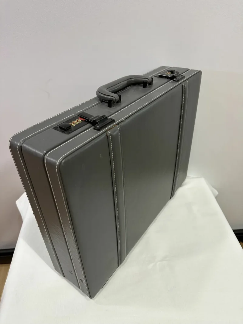 Der Vintage Aktenkoffer / Aktentasche aus Echtleder befindet sich in einem guten bis sehr guten Zustand. Dieser hübsche Aktenkoffer bietet vielseitige Nutzungsmöglichkeiten. Er eignet sich besonders gut für geschäftliche Angelegenheiten, da er wichtige Dokumente sicher und sauber transportieren kann. Zudem ist er handlich und in einem schönen grauen Ton gehalten. Bei Bedarf kann er selbstverständlich auch abgeschlossen werden. Der Aktenkoffer ist sowohl für den täglichen Gebrauch als auch für wichtige Termine geeignet.