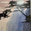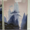 62 x 94 cm pro Bild und als Paar genau richtig: Links dominieren hohe Felswände mit ausladenden Baumkronen, rechts öffnet sich die Landschaft mit weiteren Bergspitzen und einer hellen Sonne oder einem Mond. Die sanften Pastelltöne von Rosé bis Nebelblau wirken ruhig, modern und machen den Raum sofort freundlicher. Unten steht „Frontline Editions“, dazu die Signatur „Mallett“. Hinter Glas im hellen Rahmen, zeitlos und leicht zu kombinieren.