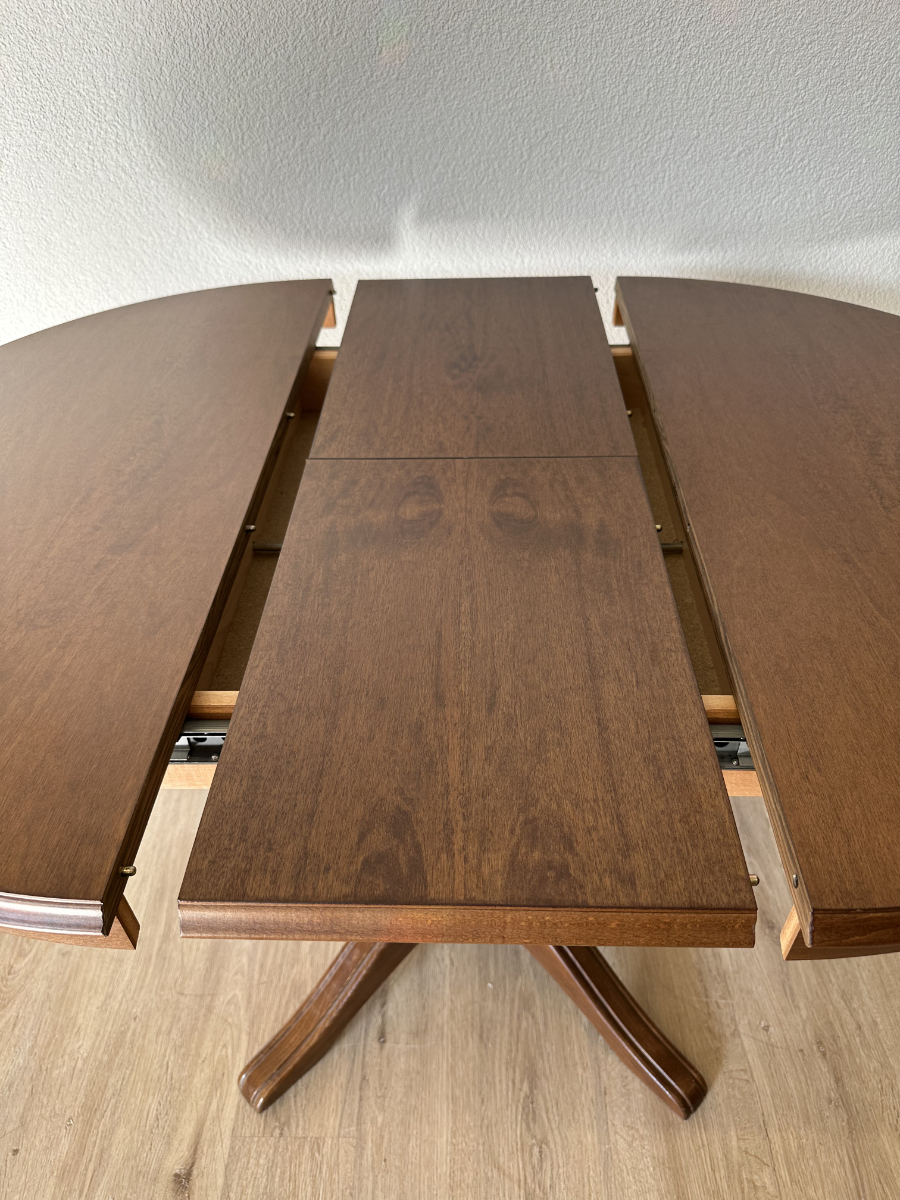 Vintage ausziehbarer Rundtisch aus Nussbaumholz mit Mittelfuss
