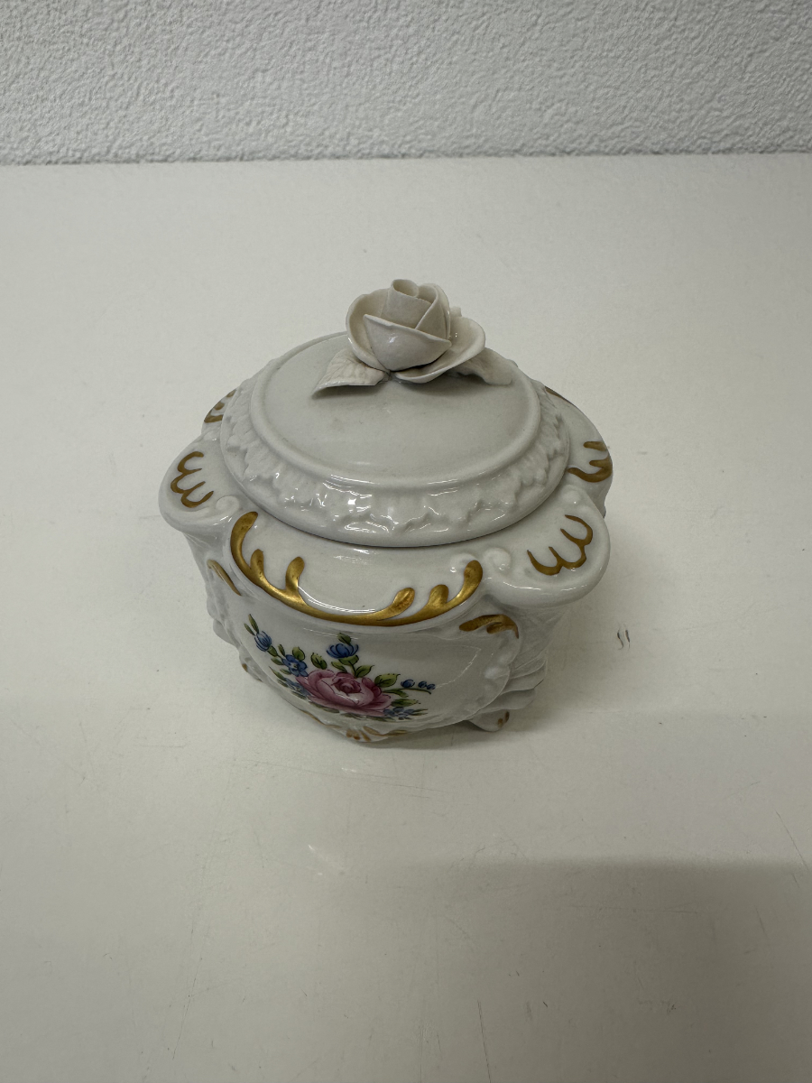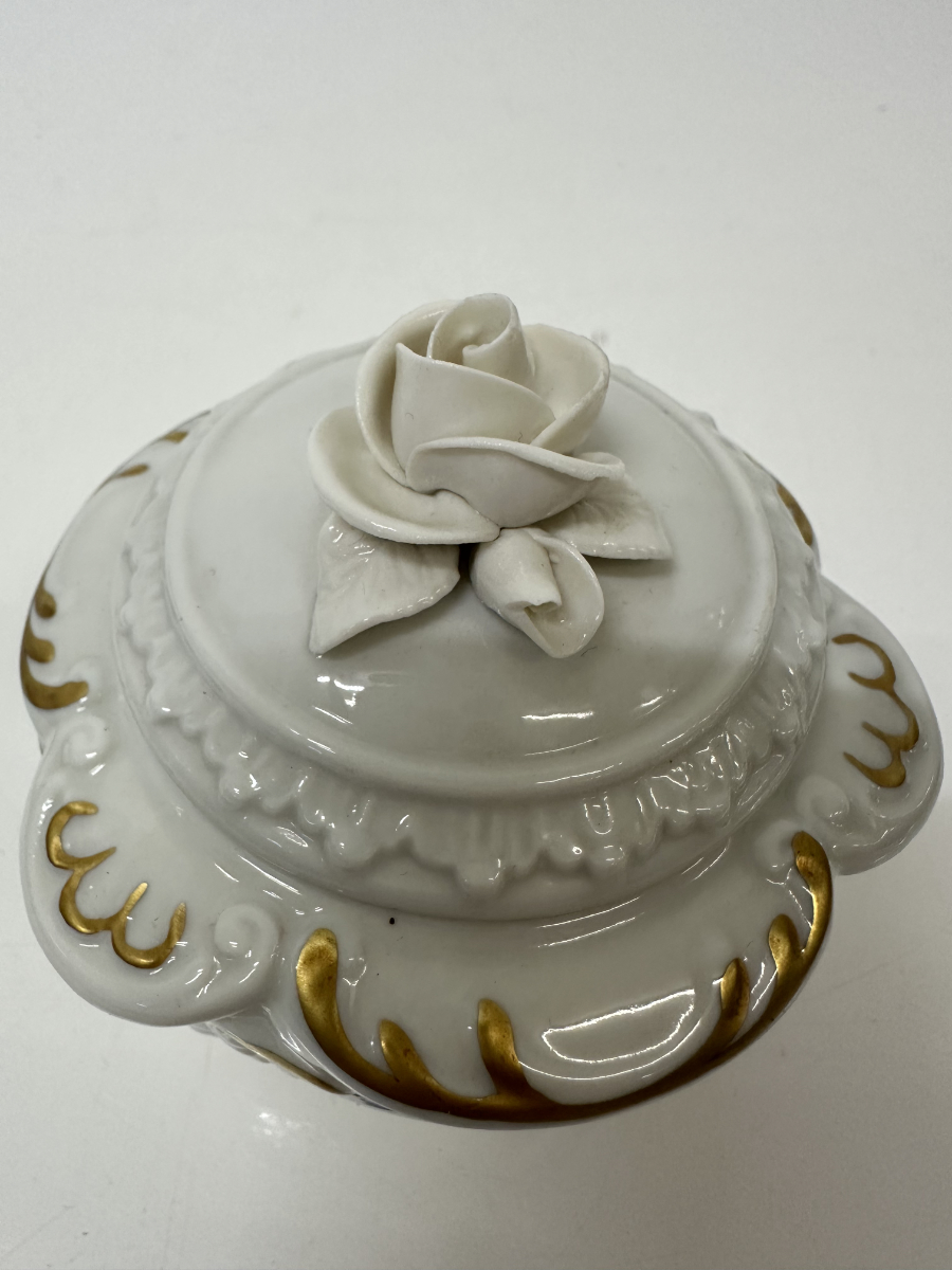 Vintage Barock Porzellan Deckeldose mit Rose, Rudolf Kämmer
