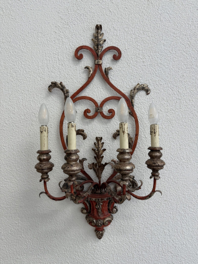 Vintage Barockstil 4-flammig Wandlampe aus Holz und Metall