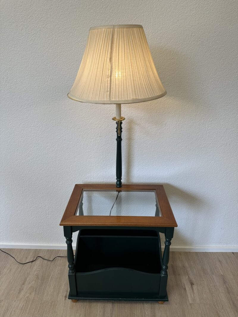 Vintage Beistelltisch mit integrierter Tischlampe und Ablagefach
