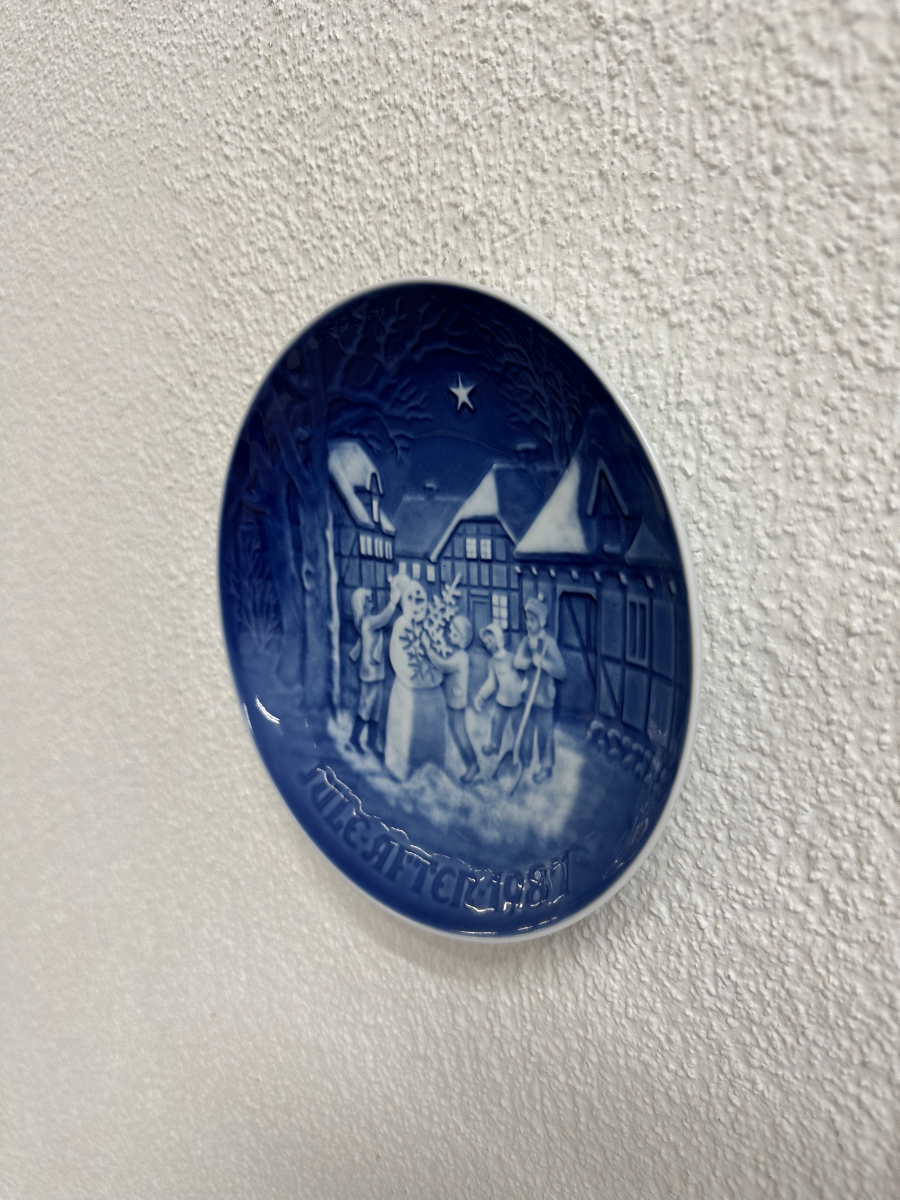 Schnee, Sternenhimmel und spielende Kinder mitten im Dorf: Dieser originale Weihnachtsteller von Bing & Grøndahl zeigt eine herzerwärmende Winterszene mit Schneemann und Kindern, die gemeinsam dekorieren und feiern. Die typische kobaltblaue Reliefprägung wirkt besonders lebendig, weil Licht und Schatten das Motiv je nach Blickwinkel unterschiedlich betonen. Ein wunderschönes Sammlerstück aus Dänemark, das sofort Weihnachtsstimmung bringt.