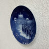 Kobaltblau, Schnee und königliche Stimmung: Dieser originale Weihnachtsteller von Bing & Grøndahl zeigt den Wachwechsel vor dem Schloss Fredensborg. Die uniformierten Gardisten ziehen durch die winterliche Szenerie, im Hintergrund leuchtet die Schlossfassade unter einem sternklaren Himmel. Das feine Relief sorgt für Tiefe, Licht und Schatten und macht den Teller an der Wand oder in der Vitrine richtig wirkungsvoll.