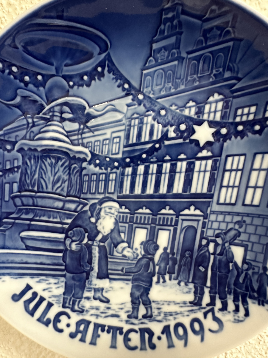 Vintage Bing & Grøndahl / Royal Copenhagen Weihnachtsteller 1993 «Julemanden pa Amagertorv / Father Christmas in Copenhagen»