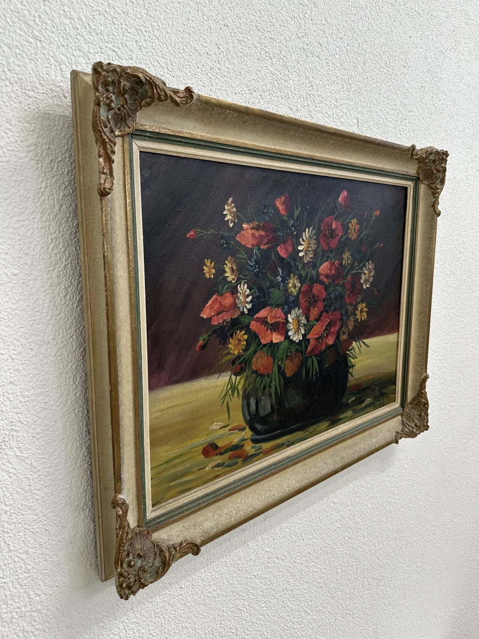 Vintage Blumenstillleben Ölbild mit verziertem Rahmen 74 x 58 cm