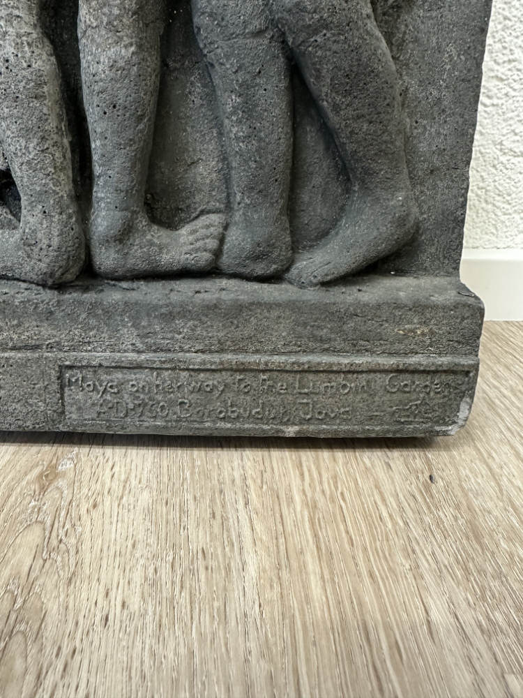 Vintage buddhistisches Wandrelief aus Kunststein, «Maya auf dem Weg nach Lumbini», nach Borobudur, Java
