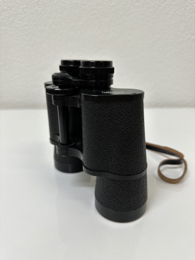 Schwarzes Metallgehäuse, griffige Belederung und präzise Optik stehen bei diesem klassischen Fernglas aus Jena im Mittelpunkt. Das Modell Jenoptem 10×50W stammt aus der DDR-Produktion von Carl Zeiss Jena und ist bekannt für seine klare Bildwiedergabe, hohe Lichtstärke und robuste Bauweise. Die Mehrschichtvergütung der Linsen sorgt für gute Kontraste, auch bei Dämmerung. Geliefert wird das Fernglas mit passendem braunem Lederköcher und Trageriemen, wie er typisch für diese Zeit war.