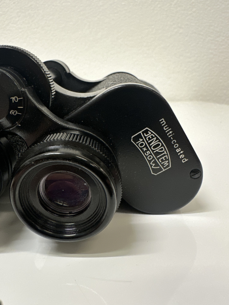 Vintage Carl Zeiss Jena Fernglas Jenoptem 10×50W aus der DDR mit Lederköcher ca. 1970er-1980er Jahre