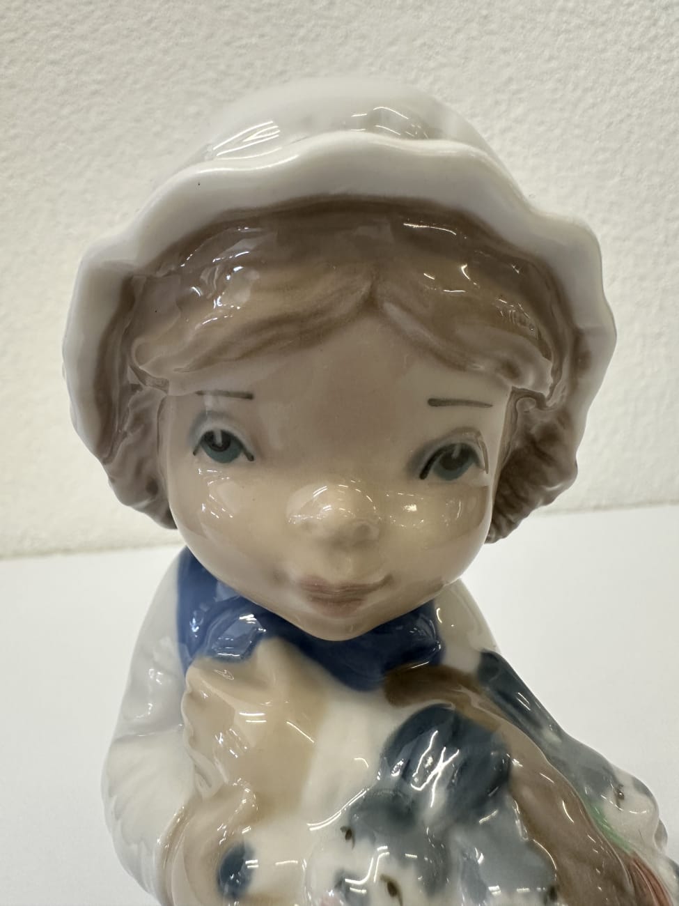 Vintage Casades Porzellan Figur Mädchen mit Hasen im Korb