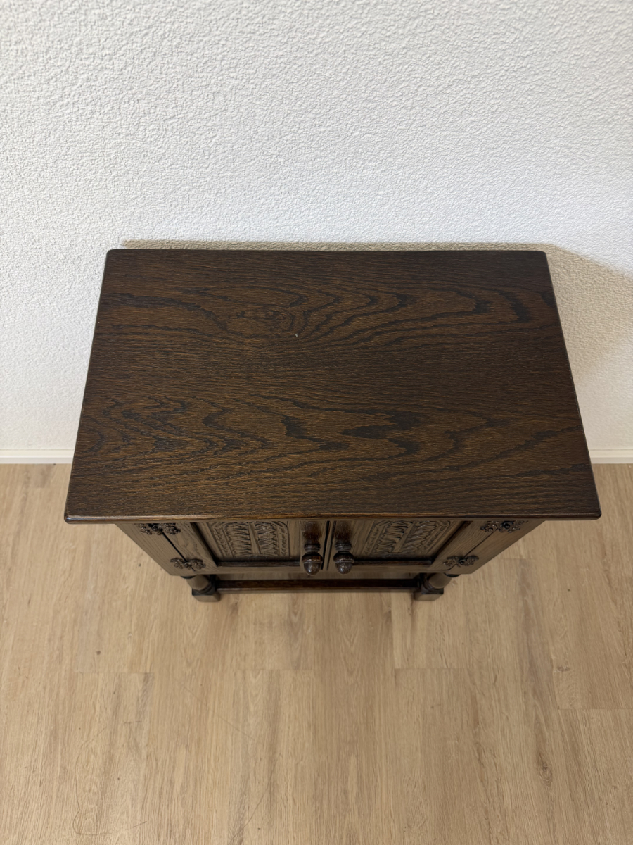 Vintage englisches Beistellschränkchen von Jaycee Furniture aus Eiche mit Schnitzdekor, um 1960