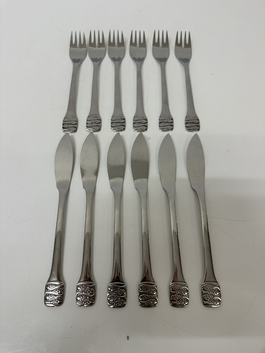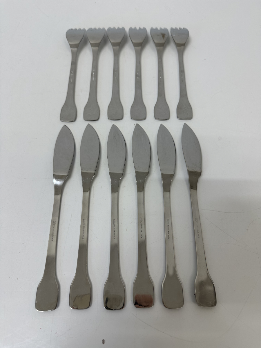 Vintage Fischbesteck Set BSF aus Edelstahl 18/8 mit Fischmotiv, 12-teilig