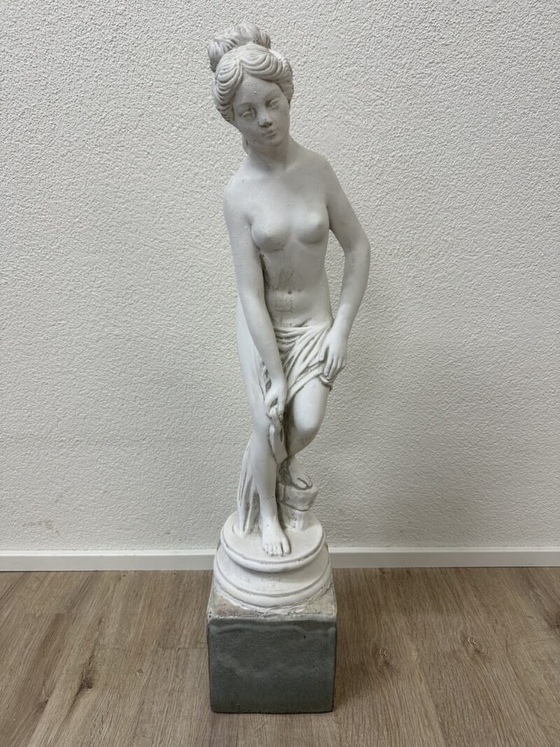Vintage Frauenfigur Skulptur in Weiss auf Sockel