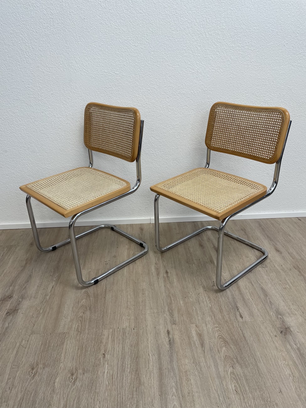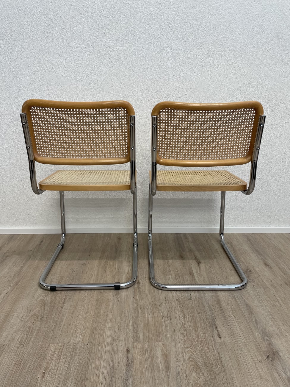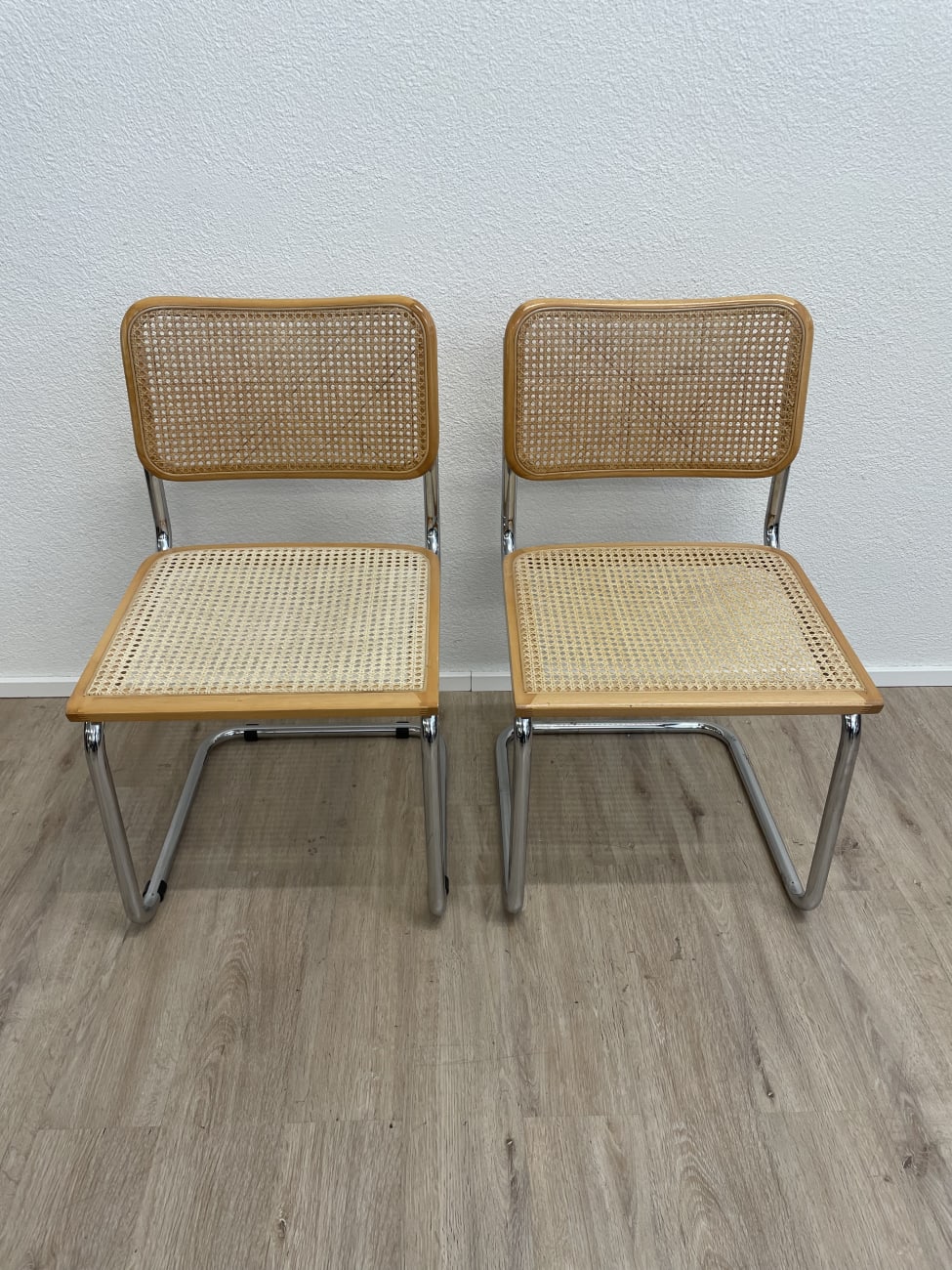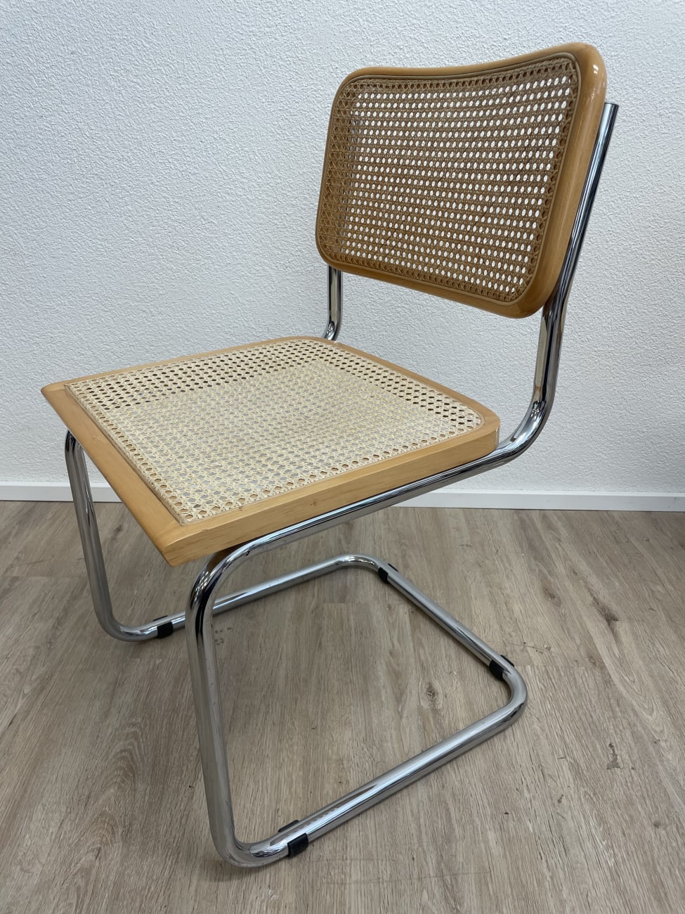 Vintage Freischwinger Stühle aus Holz und Wiener Geflecht mit Chromstahl