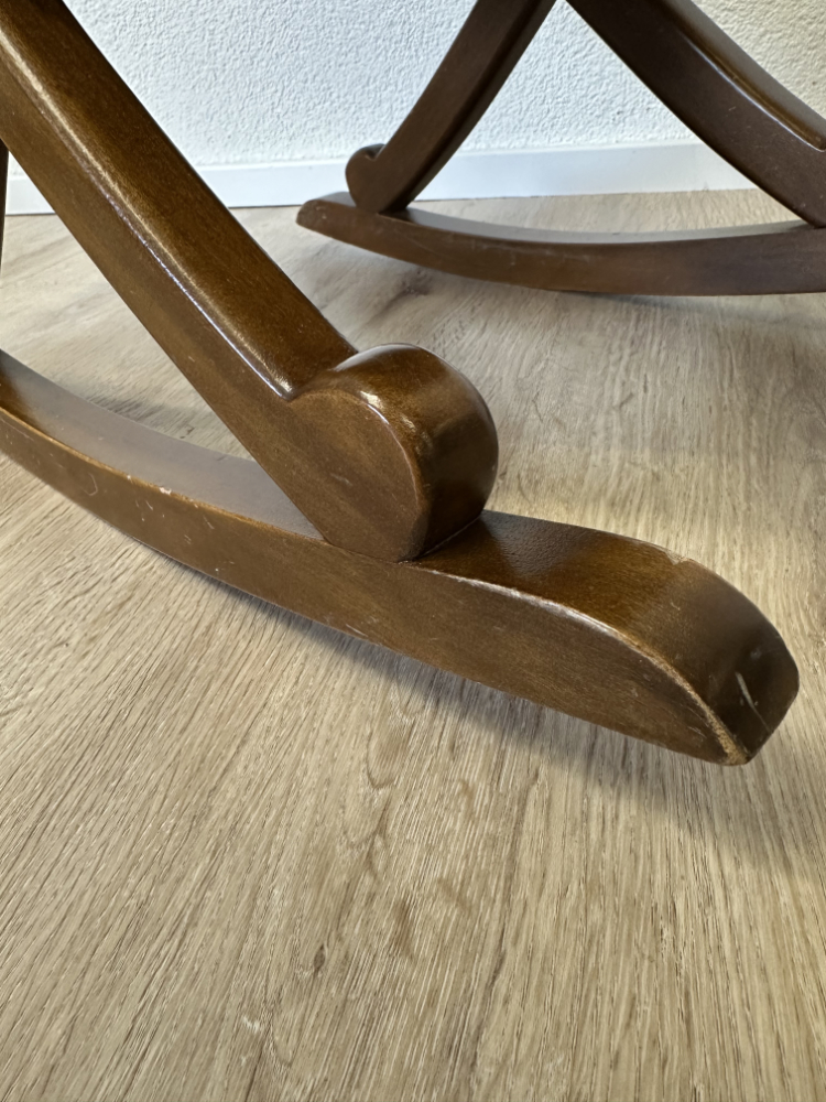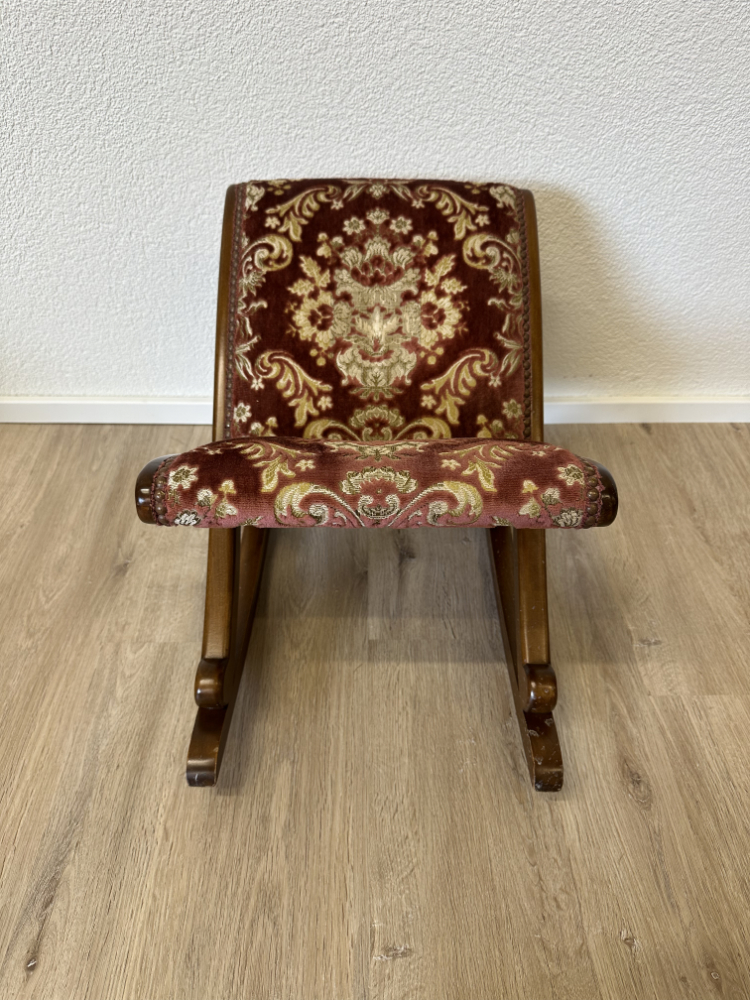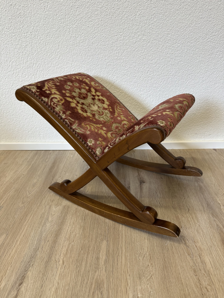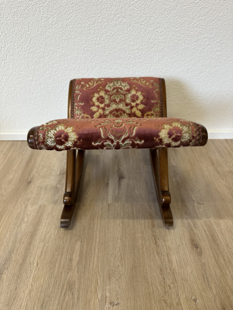 Vintage Fussschaukler aus Holz mit gemustertem Polster