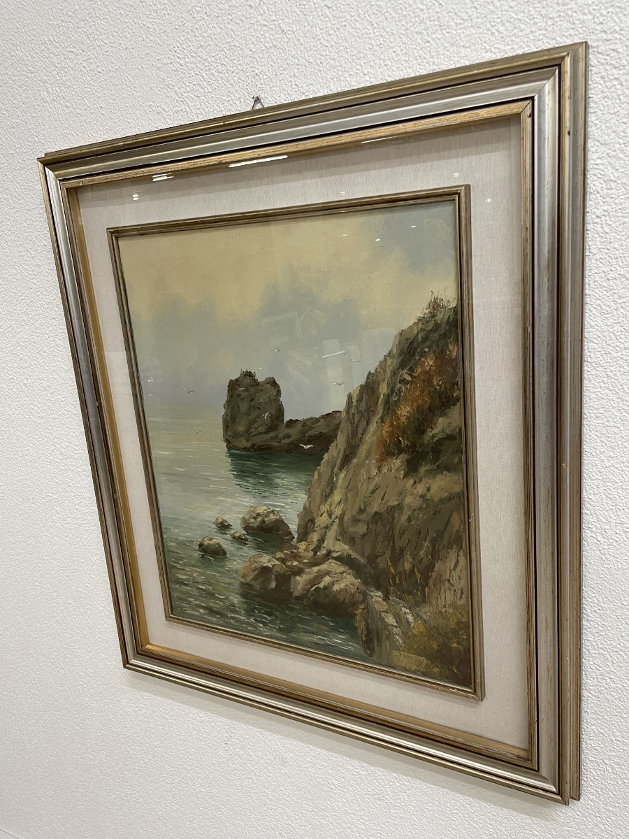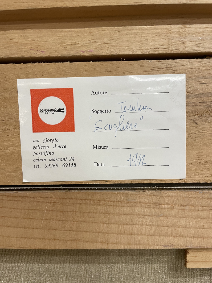 Vintage Gemälde Küstenfelsen „Scogliere“ von Tomber, Tommasi Alberto 1982, 75 x 85 cm