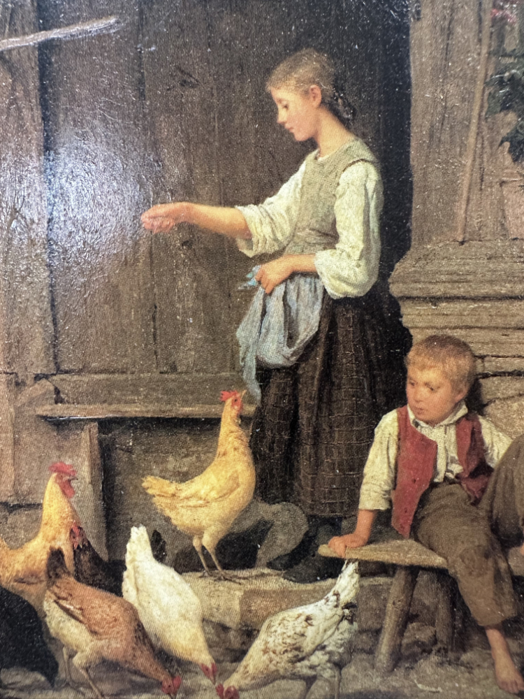 ✅ Motiv «Mädchen, Hühner fütternd» nach Albert Anker (1831-1910)