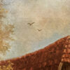 Vintage gerahmtes Wandbild «Vor der Mühle» von Elizabeth Paetz-Kalich im Buco-Holzrahmen ca. 1960er Jahre