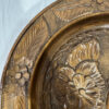 Vintage handgeschnitzter Holzteller mit Blumenrelief und Wandaufhängung, ca. 1950er Jahre