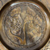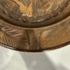 Dieser kunstvoll gearbeitete Vintage Holzteller beeindruckt durch seine detailreiche Handarbeit und warme Ausstrahlung. In der Mitte zeigt sich ein fein geschnitztes Blumenmotiv mit geschwungenen Blättern, umrahmt von floralen Ornamenten am breiten Rand. Das Stück wurde aus massivem Hartholz gefertigt und anschliessend poliert, wodurch die natürliche Maserung besonders schön hervortritt.