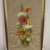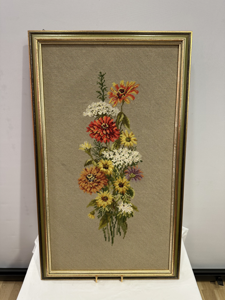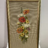 Vintage handgesticktes Blumenbild aus den 1970er Jahren im Goldrahmen