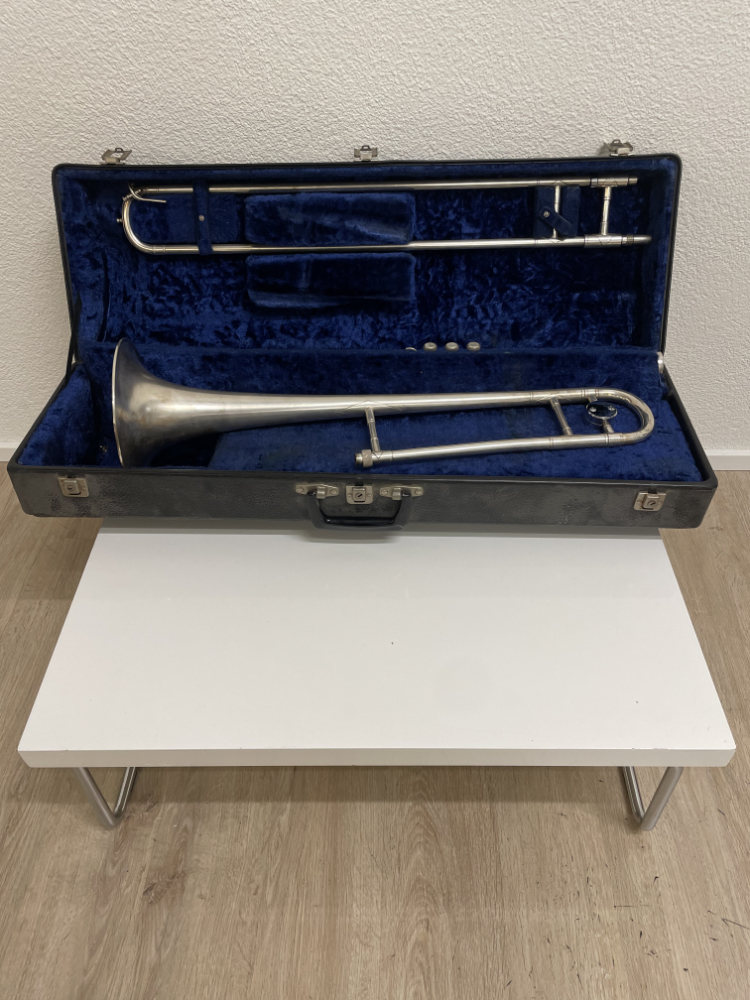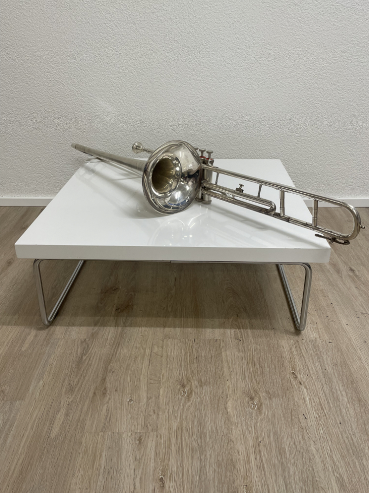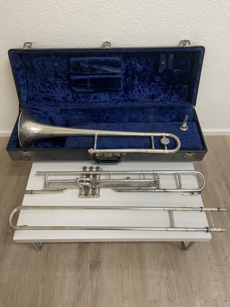 Schweizer Instrumentenbau aus Sumiswald mit einer richtig seltenen Besonderheit: Diese Hirsbrunner „Crown“ Posaune ist umbaubar und kann je nach Bedarf als Zugposaune oder als Ventilposaune gespielt werden. Du montierst entweder den Zug oder das Ventilteil, dadurch bekommst du zwei Spielarten in einem hochwertigen Instrument. Die Gravur „Hirsbrunner Sumiswald Instr. Fab.“ sowie „Crown“ ist gut sichtbar. Der originale Hartschalenkoffer mit dunkelblauer Polsterung ist dabei. Versilberte Oberfläche mit schöner Patina, lässt sich bei Bedarf mit Silberputztuch auffrischen.