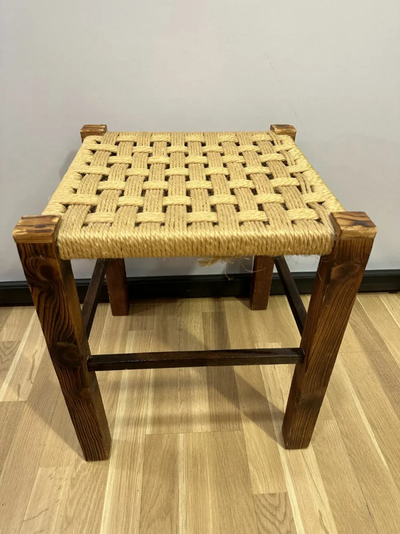 Vintage-Hocker mit geflochtener Oberfläche befindet sich in einem guten bis sehr guten Zustand. Er ist mit einer hübschen, geflochtener Oberfläche versehen. Dazu kommen die passenden, eleganten Holzbeinen. Er ist nicht nur durch seine Funktionalität für diverse Anwendungen praktisch sondern auch durch sein attraktives Aussehen.