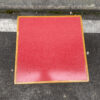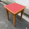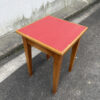 Vintage Holz Hocker mit roter Linoleum Sitzfläche ca. 1950er Jahre