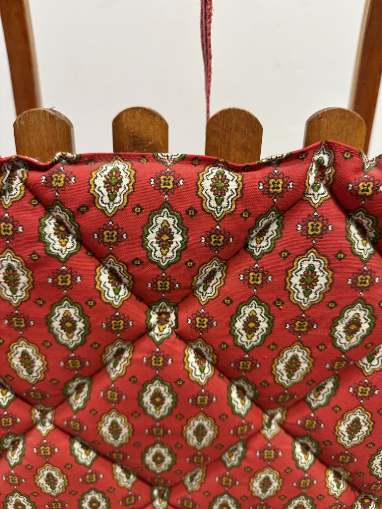 ✅ Sitzfläche mit roter, gesteppt gemusterter Stoffauflage