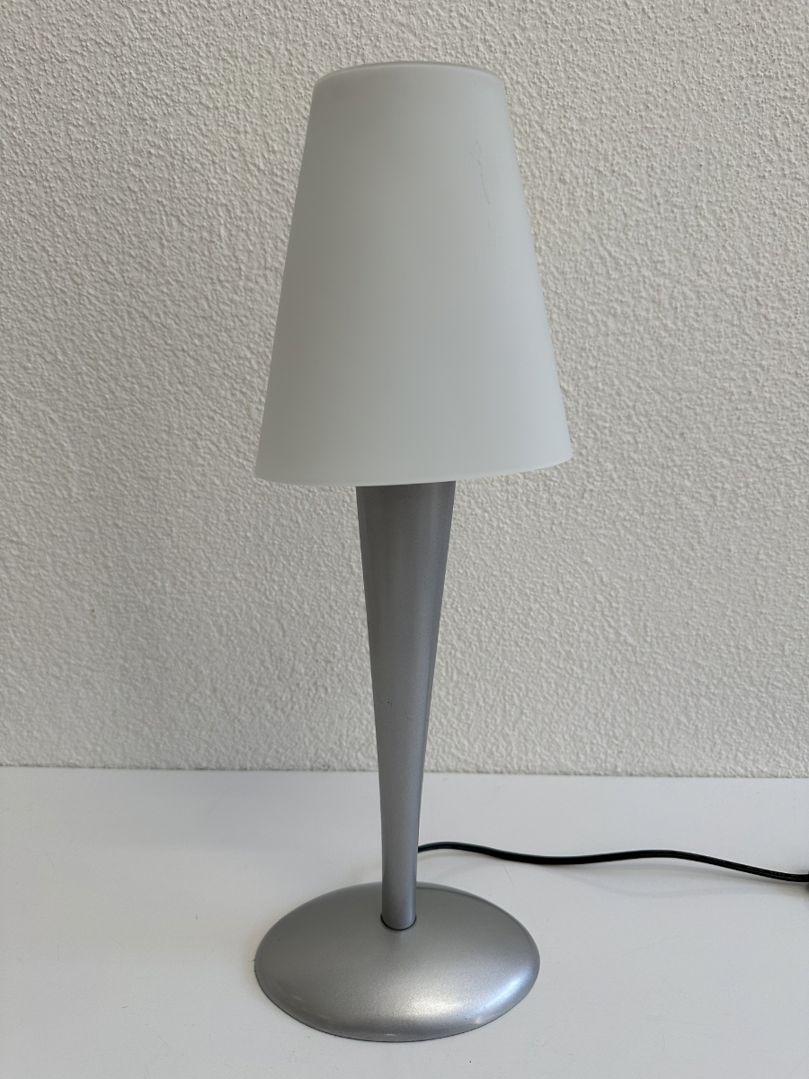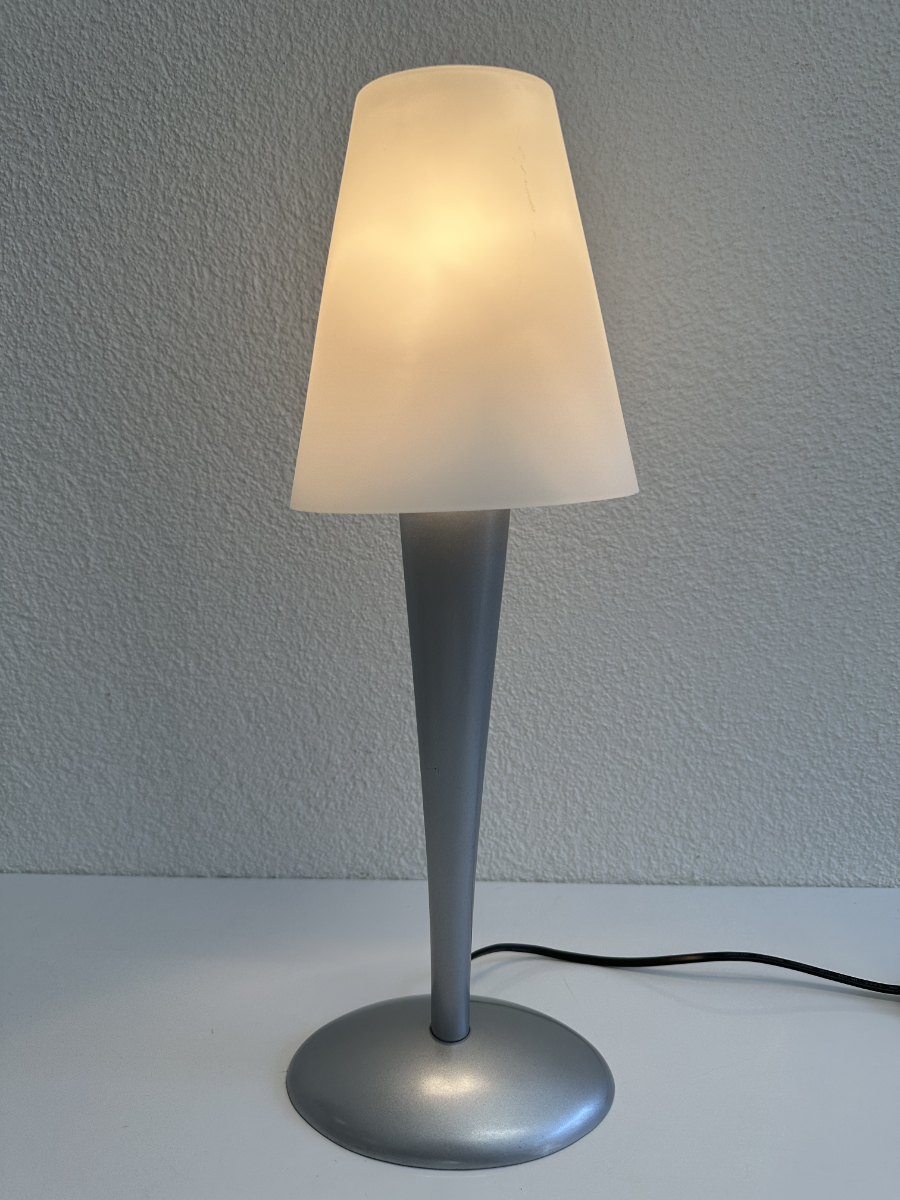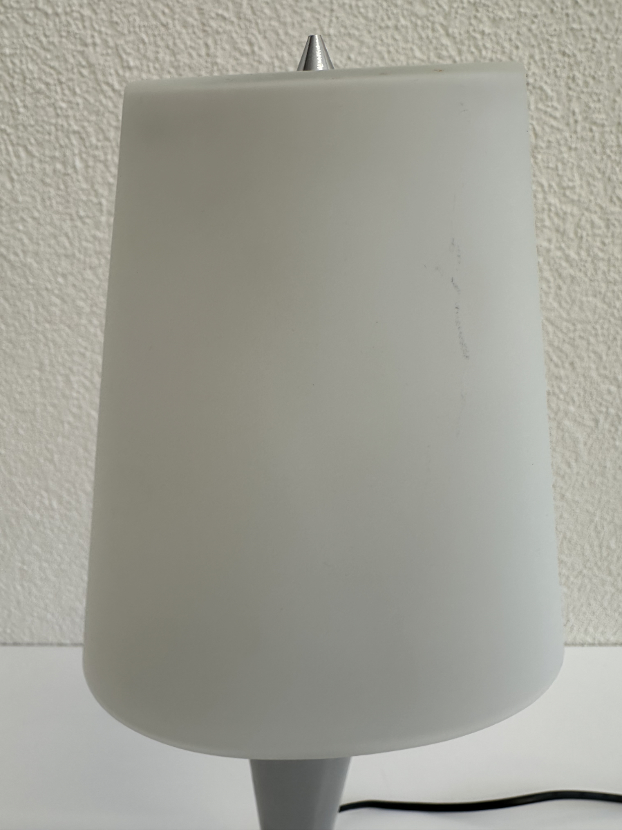 Vintage IKEA Tischlampe mit mattem Glasschirm und silbernem Fuss