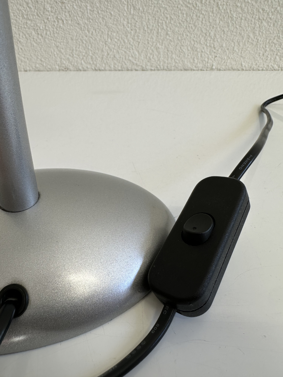 Ovaler Glasschirm, weiches Licht und eine schlanke Form, die auf Nachttisch, Sideboard oder Schreibtisch sofort passt. Diese Vintage IKEA Tischlampe stammt aus einer früheren Serie und wirkt durch den matten Schirm angenehm ruhig, ohne zu blenden. Der silberfarbene Fuss sorgt für stabilen Stand, der Kippschalter am Kabel macht die Bedienung unkompliziert.