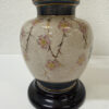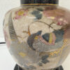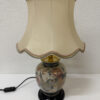 Cremefarbener Schirm mit Wellenkante, darunter ein bauchiger Keramikfuss mit feiner Craquelé-Glasur und goldbetonten Vogel und Blütenmotiven. Genau dieser japanische Export Stil war in den 1980er Jahren sehr gefragt, weil er warm wirkt und trotzdem dekorativ bleibt. Das Licht kommt weich und wohnlich, ideal für Sideboard, Nachttisch oder gemütliche Ecke.