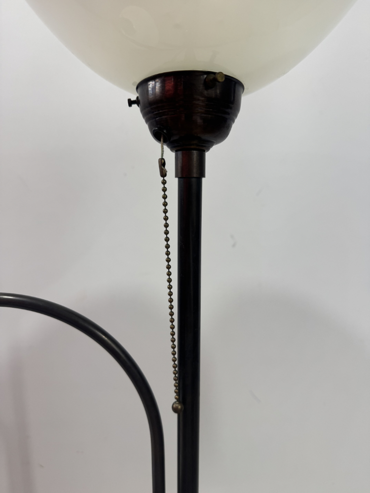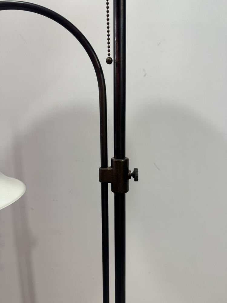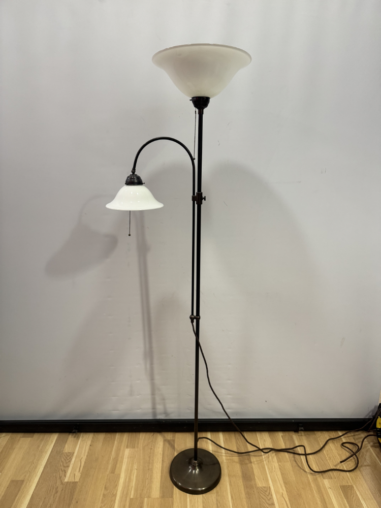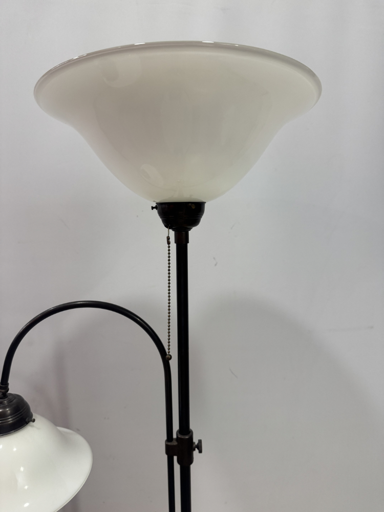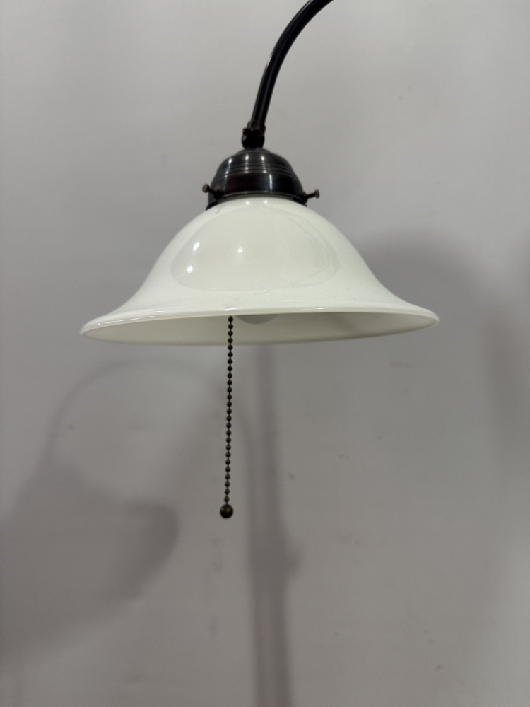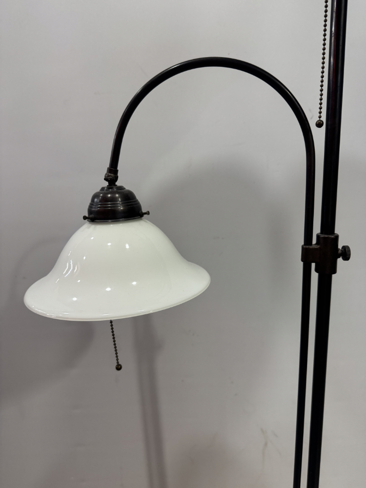 Vintage Jugendstil Stehleuchte mit Lesearm und weissen Glasschirmen