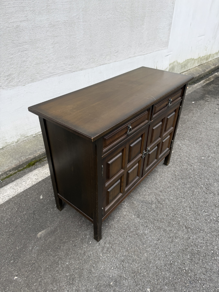Vintage Kommode aus massiver Eiche mit Kassettentüren und Schubladen